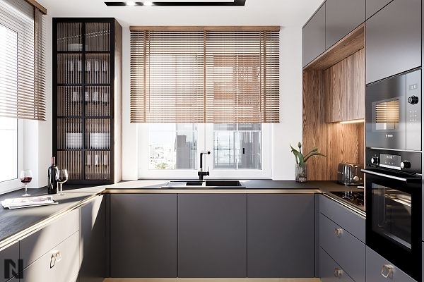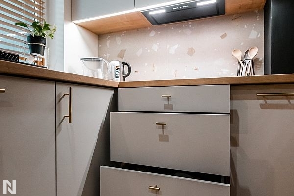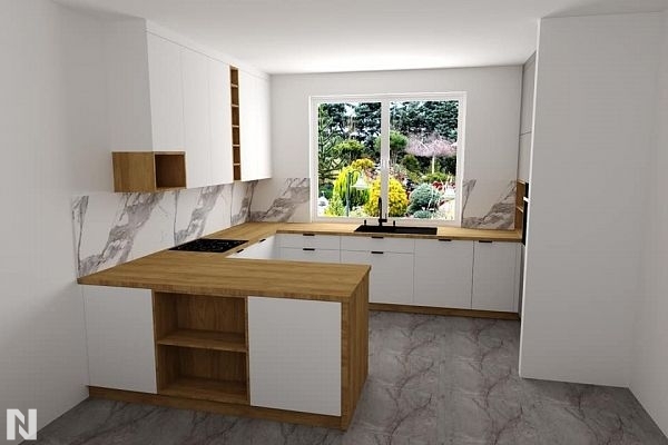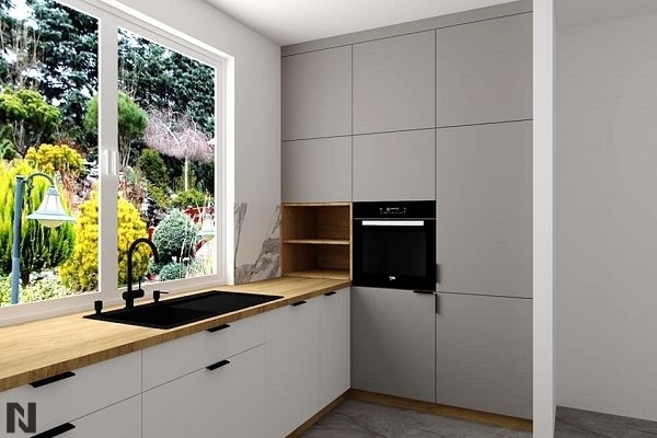 Matowe fronty z drewnianym blatem wizualizacja ALVOS meble na wymiar