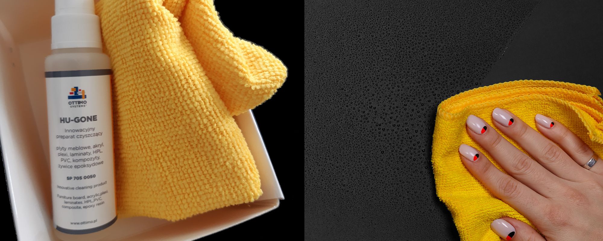 - Another recommended product is Hu-gone liquid, which is known for its effectiveness. Hu-gone is gentle on surfaces, but at the same time effectively removes dirt, so that furniture cabinets remain clean and shiny for a long time.