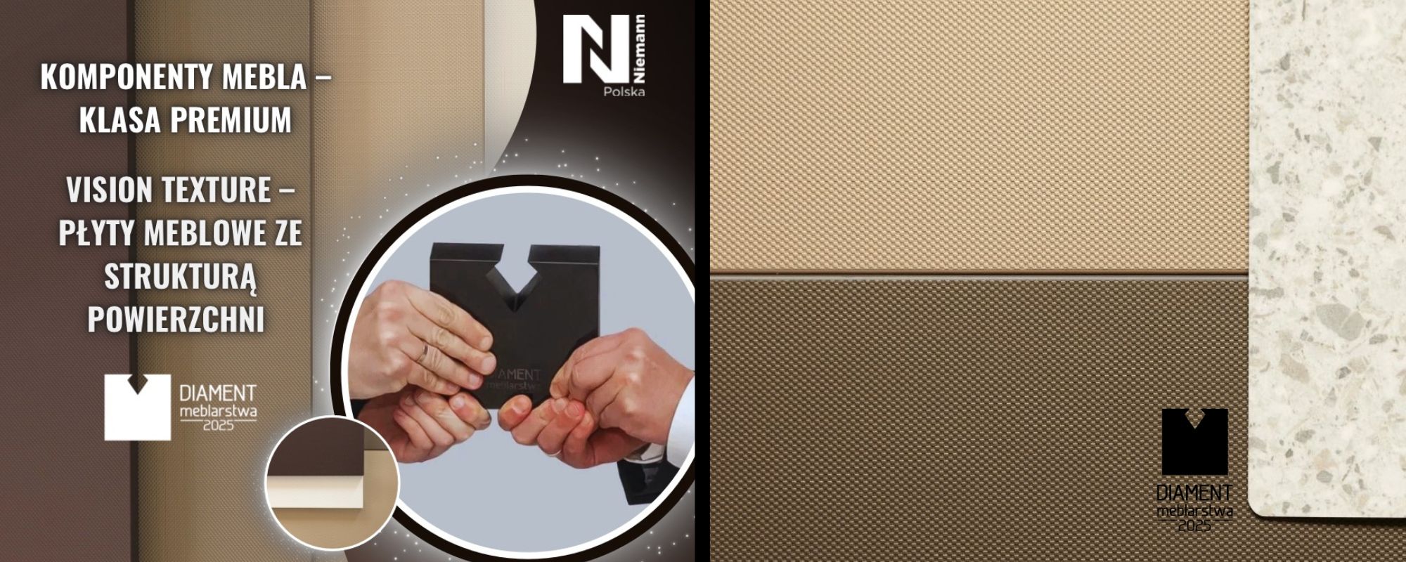 This year, the jury decided to honor VISION TEXTURE – furniture boards with a unique surface structure – from NIEMANN POLSKA, in the furniture components – premium class category.