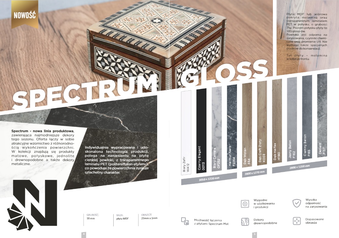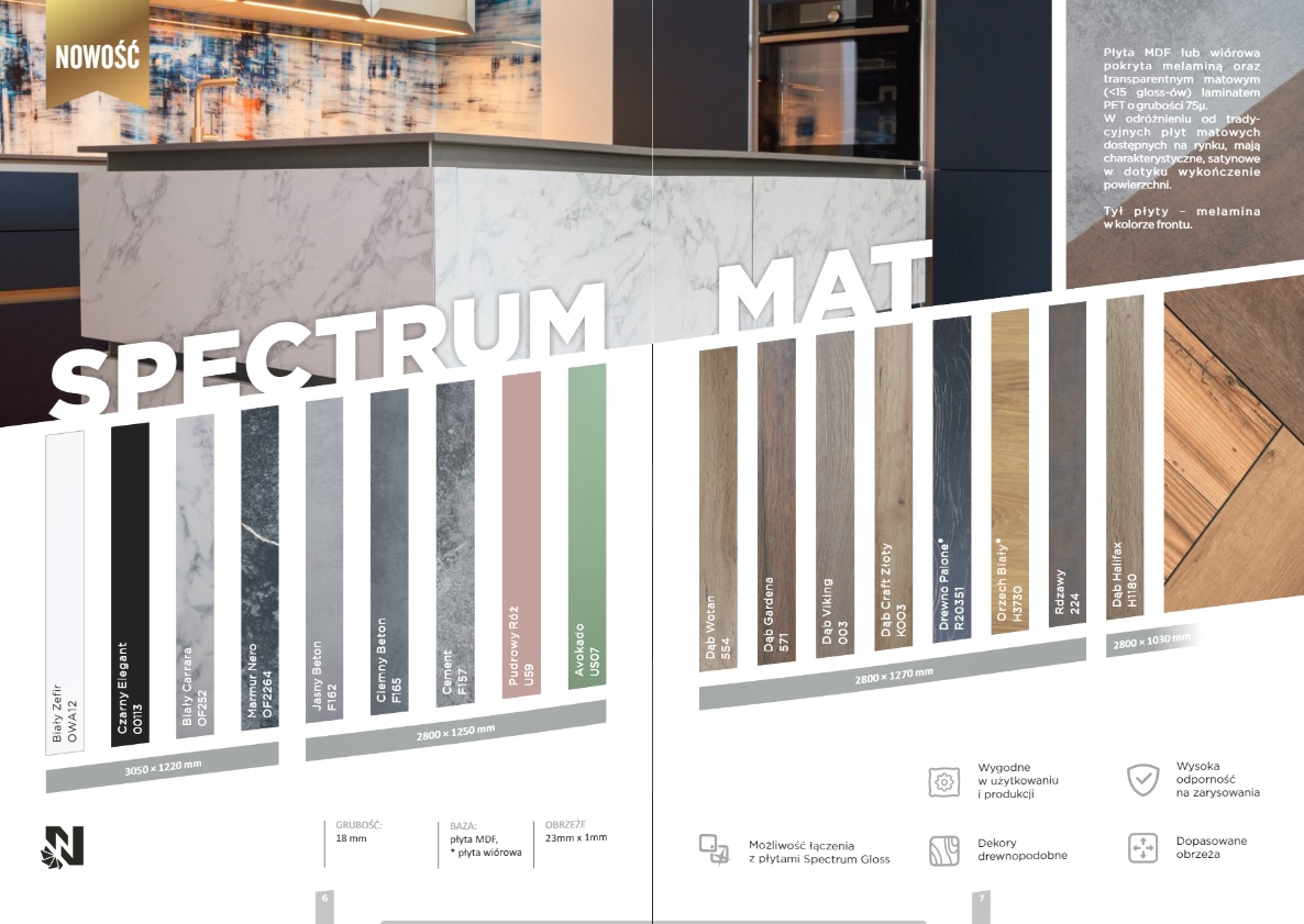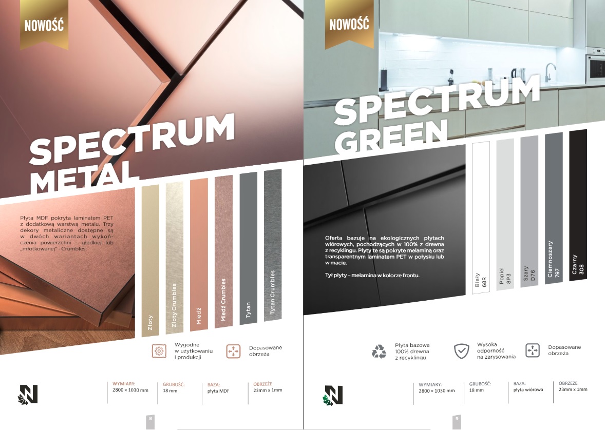 In addition to the full range of colors for all Niemann Polska products, the catalog also contains useful technical information - dimensions and the composition of particular catagories of boards.